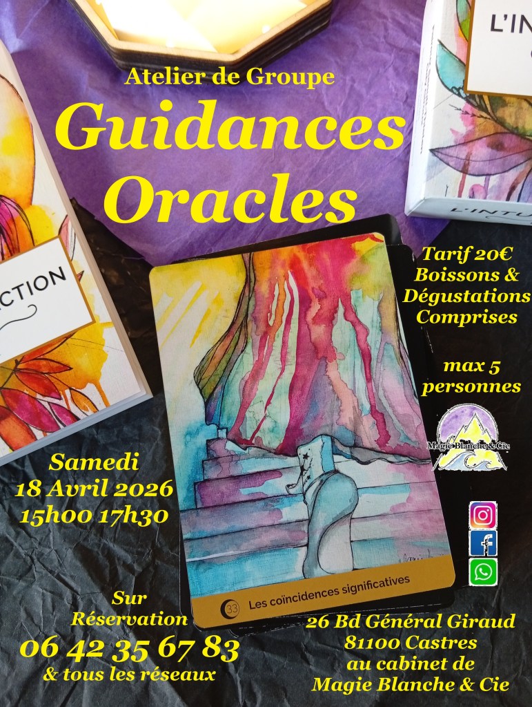 âSamedi 18 Avril 2026 26 Bd GĂ©nĂ©ral Giraud, Ă Castres, au cabinet de Magie Blanche & Cie.