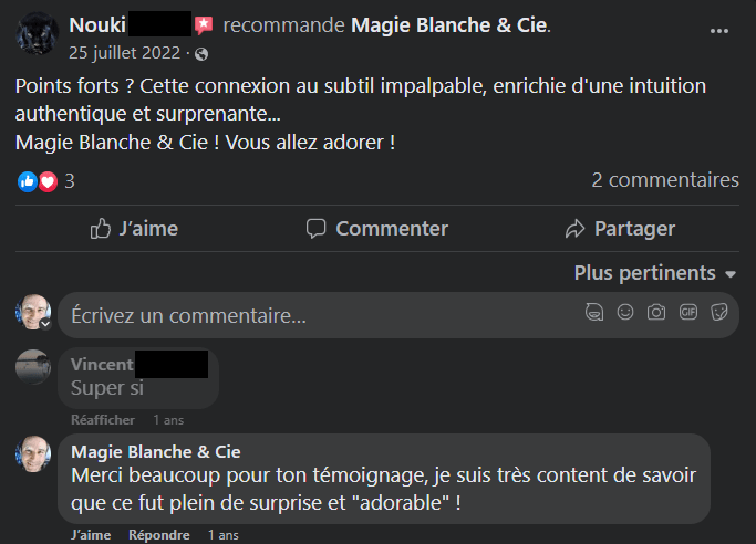 « Ce fut tout simplement magique et de plus vérifiable » M.C. 07/2022